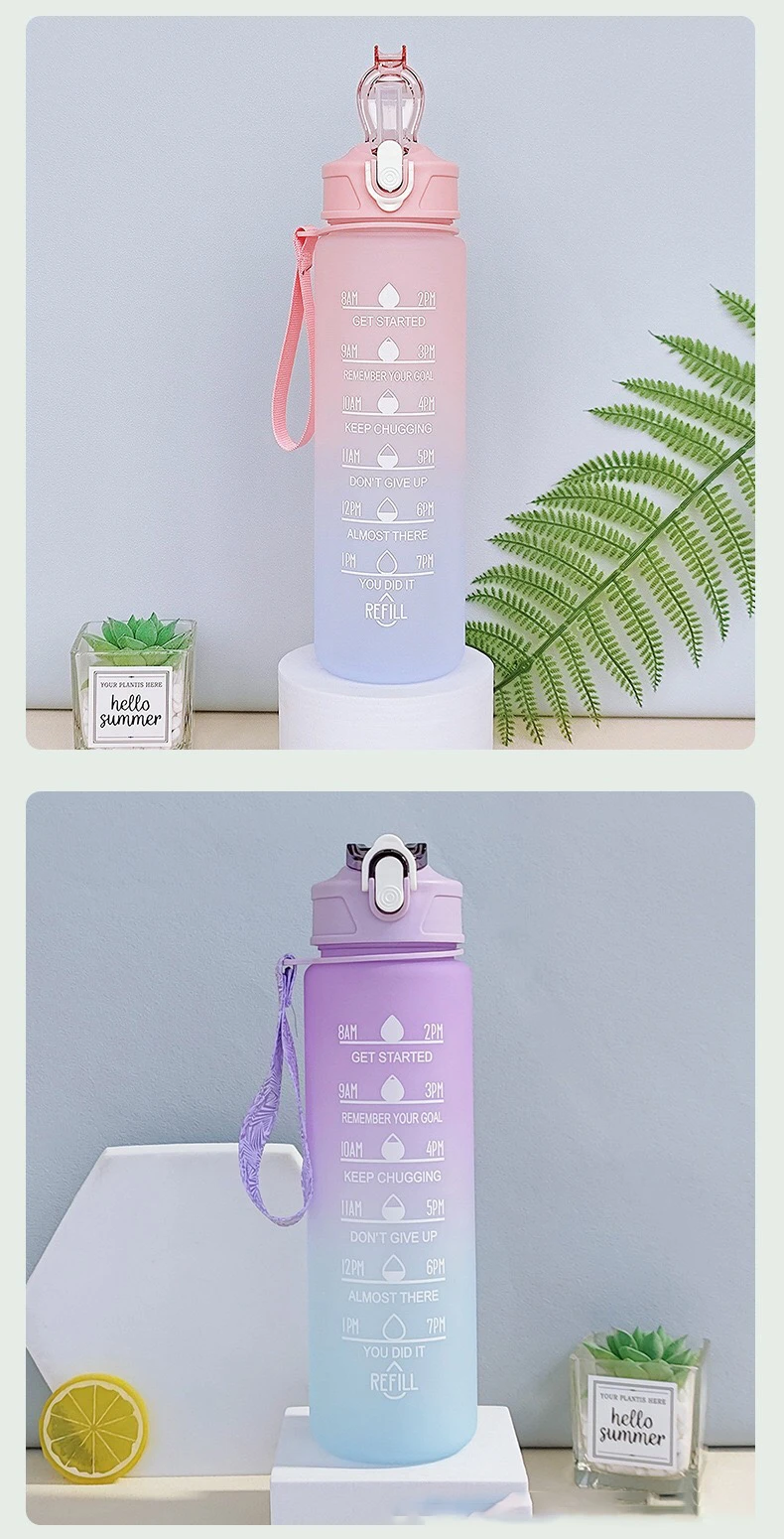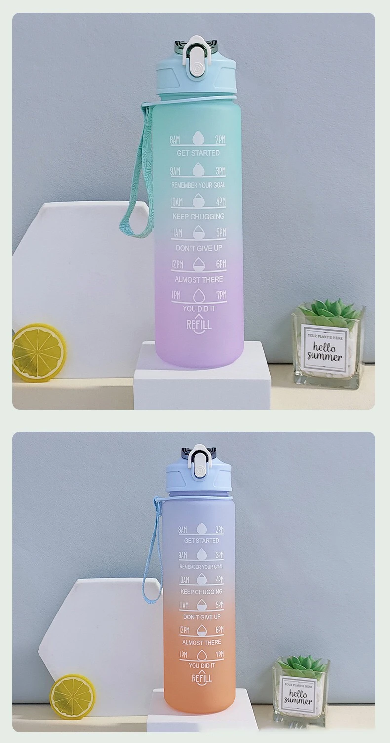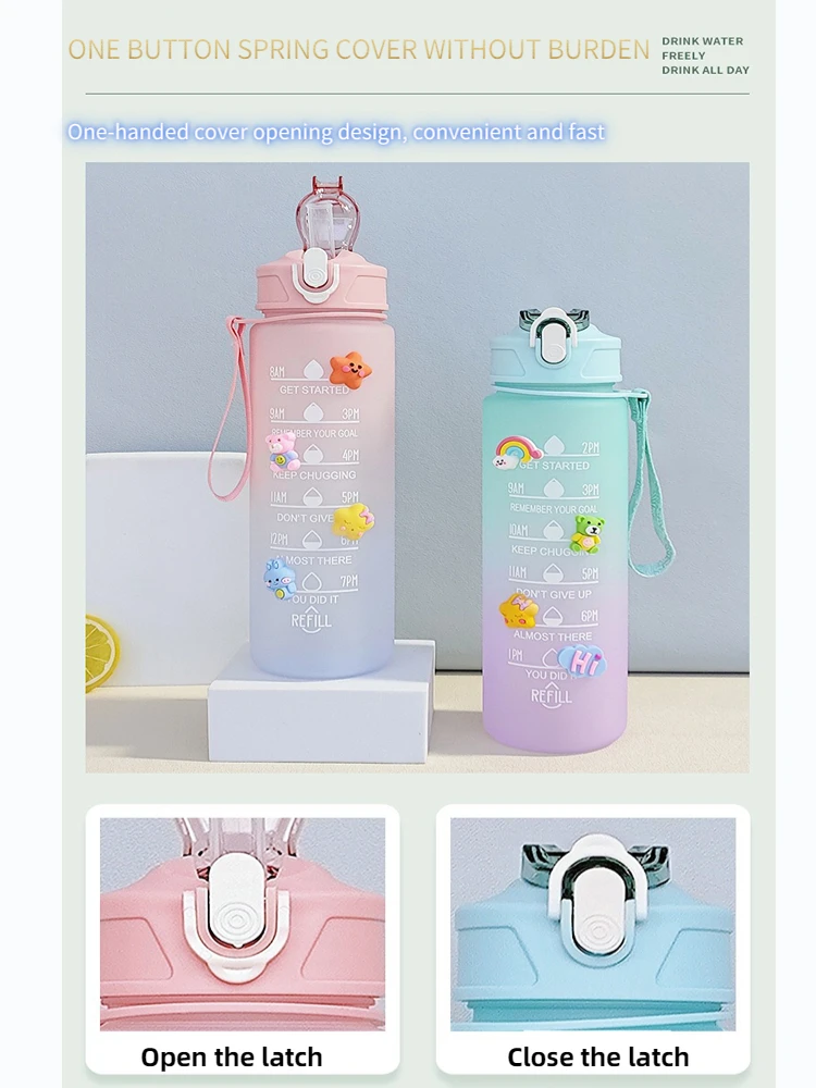 Garrafa com Capacidade para 900ml Tampa que abre com um clique Com borracha para vedação (Pode ficar na horizontal que não vaza) Dimensões : Altura 25cm, Largura 7cm